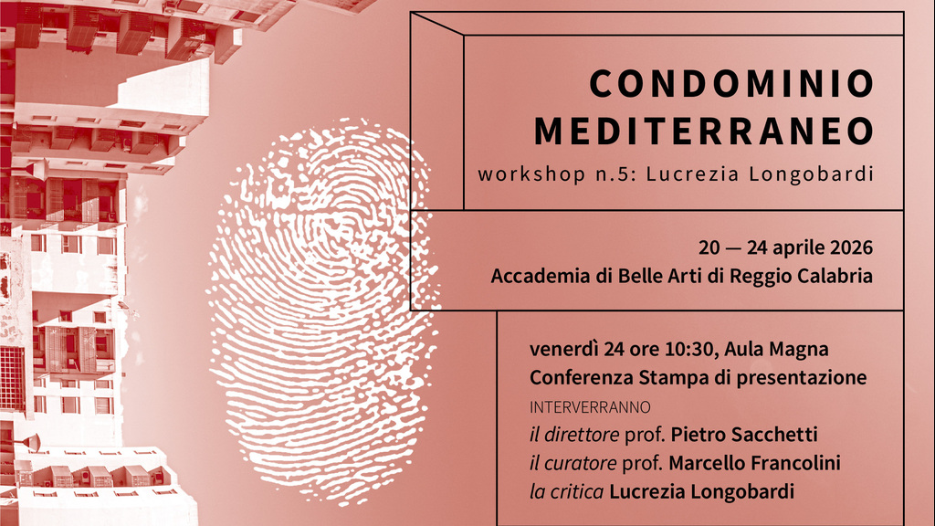 La critica e curatrice, con il gruppo-di-lavoro, presenterà il progetto di allestimento della mostra Condominio Mediterraneo elaborato come un dispositivo mobile in cui la visita si trasforma in esperienza che coinvolge il visitatore nell’interno processo di costruzioni delle opere realizzate durante i workshop precedenti con gli artisti internazionali: Adrian Paci, Romina De Novellis, Michele Di Stefano, Giulia Piscitelli. La mostra Condominio Mediterraneo verrà presentata presso il Castello Aragonese di Reggio Calabria dal 6 giugno al 30 agosto 2026. Ci sarà un momento di incontro e confronto sul lavoro del curatore e nello specifico della curatela performativa, un’idea e una prospettiva attitudinale che intende trasformare i processi di presentazione dell’opera non percepita più come oggetto dell’indagine ma come processo di scoperta.