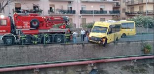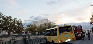 Uno Scuolabus all'alba ha perso il controllo finendo contro la ringhiera