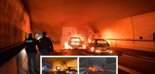 Chiodi sull’asfalto e fiamme per bloccare la fuga