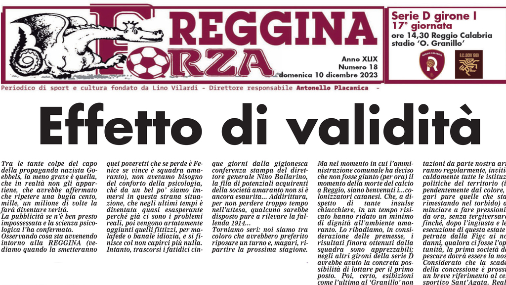 Conto alla rovescia per la partita di domenica 10 dicembre alle 14:30 allo stadio Oreste Granillo tra Lfa Reggio Calabria e il Locri. Tutte le curiosità del pre-partita come sempre nel periodico di sport e cultura “Forza Reggina”. Scaricalo nel download.
