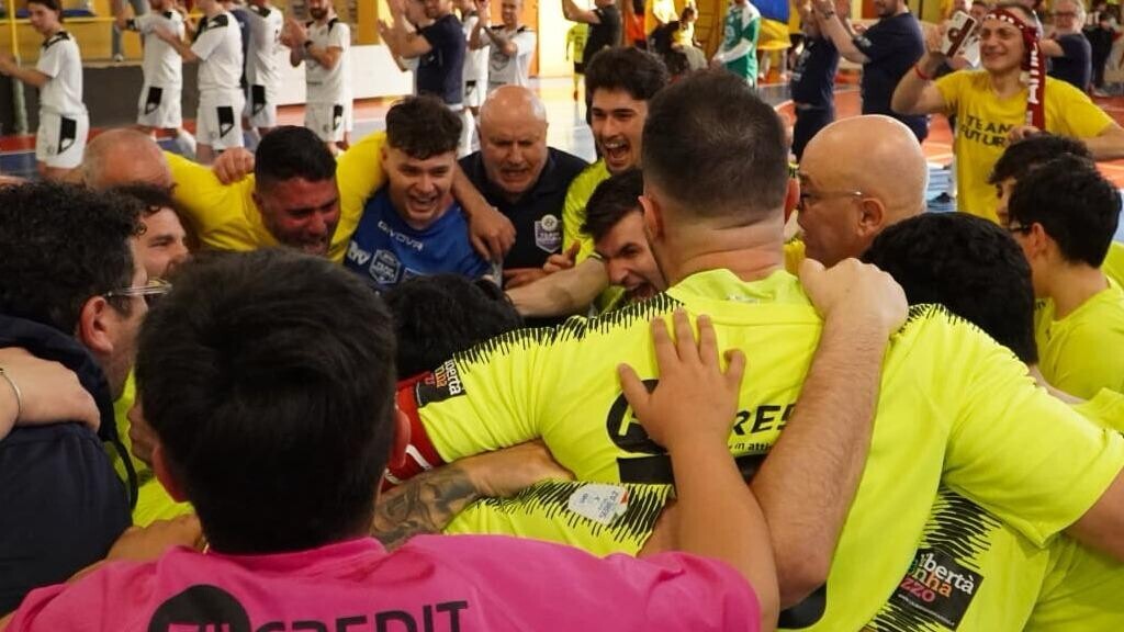 Il Palattinà si trasforma in una bolgia gialloblù e spinge la Cadi Antincendi Futura verso un traguardo storico: per il secondo anno consecutivo, la squadra del presidente Nino Mallamaci conquista l’accesso ai playoff per la Serie A di futsal. Il 2-2 contro il Giovinazzo basta e avanza per far esplodere la festa, al termine di una gara intensa e combattuta.