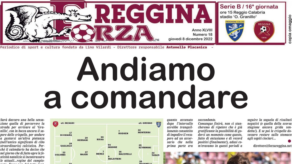 Scarica la nuova edizione con tutte le curiosità e i retroscena dell’incontro tra Reggina e Frosinone in programma alle 15 di giovedì 8 dicembre allo stadio Granillo.