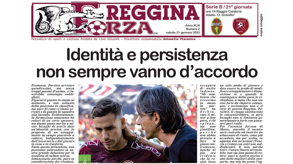 Dopo la sconfitta interna con la Spal e alla vigilia del nuovo turno casalingo che vedrà gli amaranto sfidare la Ternana, arriva il nuovo numero di "Forza Reggina" (che trovi in allegato), periodico diretto da Antonello Placanica, che apre con il titolo: "Identità e persistenza non sempre vanno d’accordo".